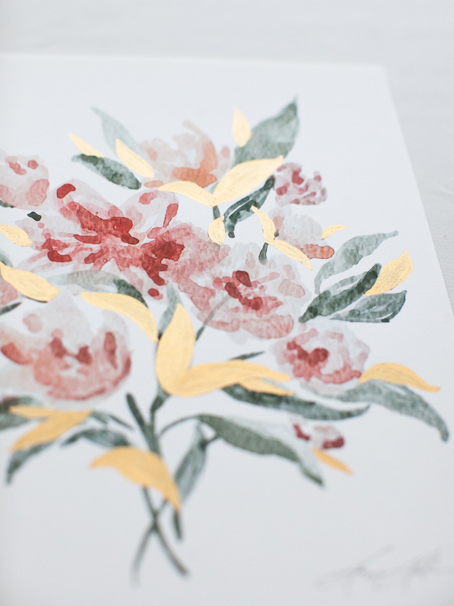 This print is hand embellished with metallic gold acrylic to create a fine art reproduction of the original that is truly stunning! Fine art prints are created with archival ink on white, acid-free, cold press paper or unstretched matte canvas. All prints are made-to-order, signed, and hand-cut in studio. Some image differences may occur as the art is resized to accommodate standard frame sizes.
